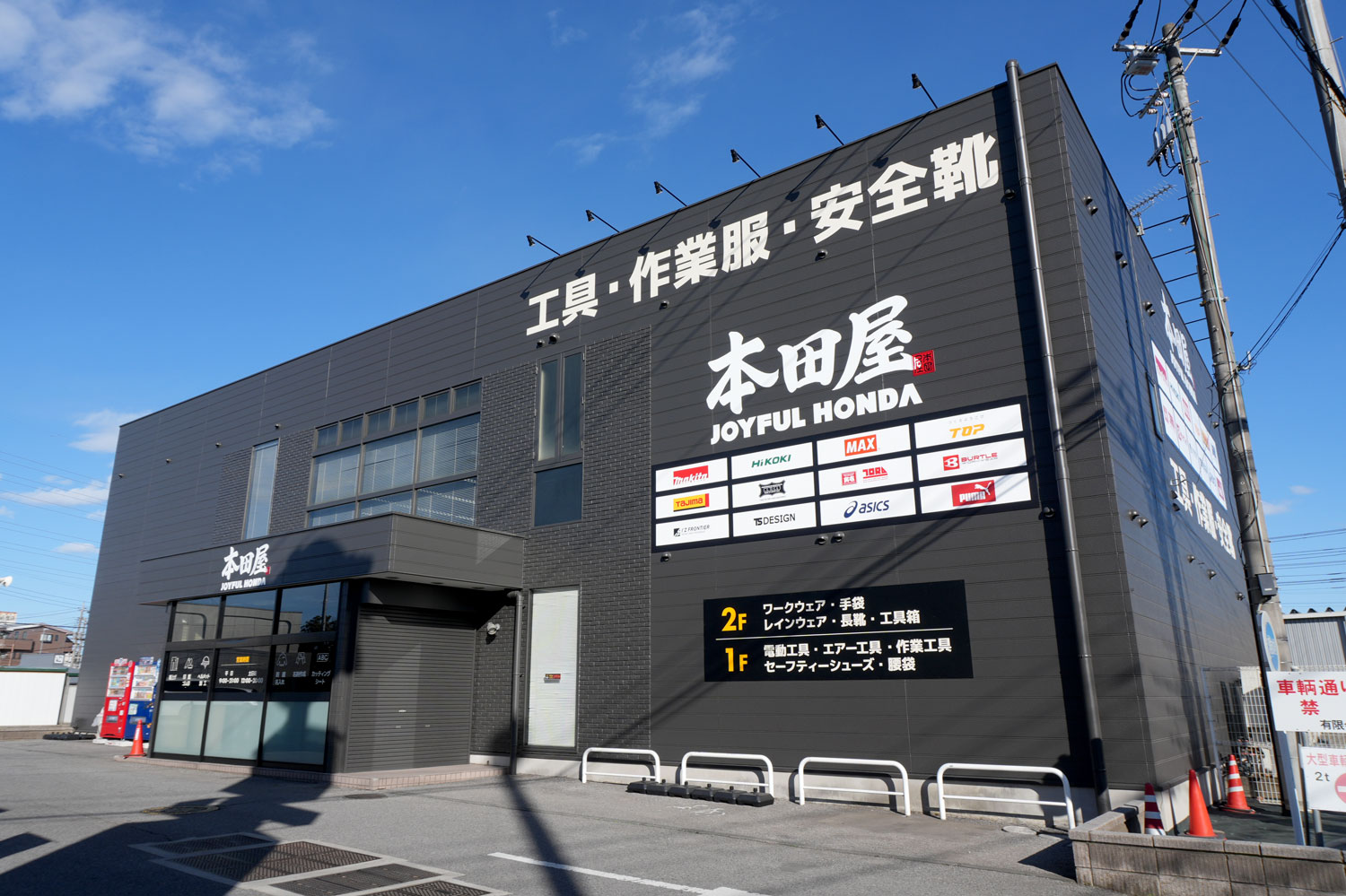 敷地面積は約533㎡(約160坪)[共用駐車場除く]、売場面積を約940㎡(約285坪)とし、建築・土木・電気・塗装など、さまざまな業種のお客さまのニーズに対応できる品揃えを実現しました。
